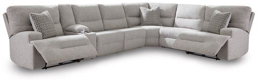 Sleek and streamlined, this contemporary power reclining sectional with console is ready to sweep you off your feet. Its plush, divinely comfortabl...