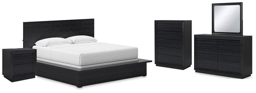 Londer California King Panel Bed with Mirrored Dresser and Chest