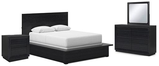 Londer King Panel Bed with Mirrored Dresser and Nightstand