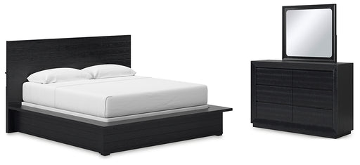 Londer California King Panel Bed with Mirrored Dresser and Nightstand