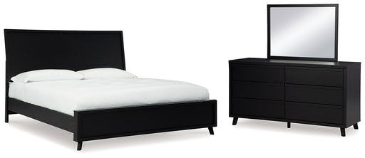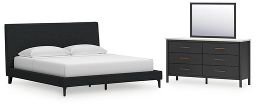 Cadmori King Upholstered Bed with Mirrored Dresser
