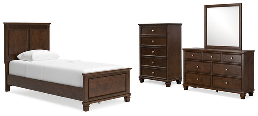 Danabrin Twin Panel Bed with Mirrored Dresser and Chest