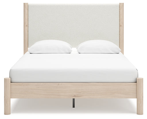 Cadmori Queen Upholstered Panel Bed with Mirrored Dresser