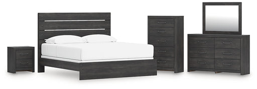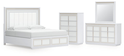 Feddinger King Panel Bed with Mirrored Dresser, Chest and Nightstand