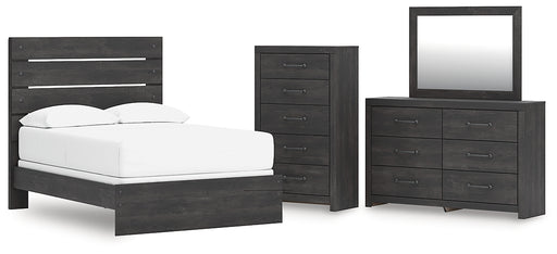Hollivern Full Panel Bed with Mirrored Dresser and Chest