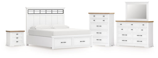 Ashbryn King Panel Storage Bed with Mirrored Dresser and Chest