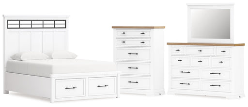 Ashbryn Queen Panel Storage Bed with Mirrored Dresser