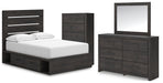 Hollivern Full Panel Bed with Storage with Mirrored Dresser and Chest