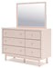Details B1323B9: Includes upholstered panel headboard, platform rails, panel footboard and roll slats, Made with engineered wood (MDF/particleboard/plywood) and decorative laminate for the right balance of affordability and durability, Subtle blush finish over replicated pecan wood grain, Decorative laminate replicates natural or man-made material surfaces with consistent color, pattern and texture, Polyester upholstery, Bed does not require a foundation/box spring, Mattress available, sold separately, Minor assembly required, B1323B1: Includes dresser and mirror, Made with engineered wood (MDF/particleboard/plywood) and decorative laminate for the right balance of affordability and durability, Subtle blush finish over replicated pecan wood grain, Decorative laminate replicates natural or man-made material surfaces with consistent color, pattern and texture, Champagne colored knobs, 6 smooth-gliding drawers , Drawer interiors are lined with a faux linen laminate for a clean, finished look, Mirror can be attached to back of dresser or wall mounted horizontally or vertically, Safety is a top priority, clothing storage units are designed to meet the most current standard for stability, ASTM F 2057 (ASTM International) , Drawers extend out to accommodate maximum access to drawer interior while maintaining safety, Minor assembly required,