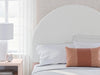 | Details | B1323-87: Made with durable engineered wood frame covered in a creamy white boucle, Polyester upholstery, ¼" bolts (not included) are needed to attach headboard to your existing bed frame, Minor assembly required, B1323-245: Made with engineered wood (MDF/particleboard/plywood) and decorative laminate for the right balance of affordability and durability, Subtle blush finish over replicated pecan wood grain, Decorative laminate replicates natural or man-made material surfaces with consistent color, pattern and texture, Champagne colored knobs, 5 smooth-gliding drawers, Drawer interiors are lined with a faux linen laminate for a clean, finished look, Safety is a top priority, clothing storage units are designed to meet the most current standard for stability, ASTM F 2057 (ASTM International), Drawers extend out to accommodate maximum access to drawer interior while maintaining safety, Minor assembly required, B1323-91: Made with engineered wood (MDF/particleboard/plywood) and decorative laminate for the right balance of affordability and durability, Subtle blush finish over replicated pecan wood grain, Decorative laminate replicates natural or man-made material surfaces with consistent color, pattern and texture, Champagne colored knobs, 1 smooth-gliding drawer, 1 open shelf, Drawer interiors are lined with a faux linen laminate for a clean, finished look, 2 slim-profile USB charging ports, Power cord included; UL Listed, Minor assembly required, B1323B1: Includes dresser and mirror, Made with engineered wood (MDF/particleboard/plywood) and decorative laminate for the right balance of affordability and durability, Subtle blush finish over replicated pecan wood grain, Decorative laminate replicates natural or man-made material surfaces with consistent color, pattern and texture, Champagne colored knobs, 6 smooth-gliding drawers , Drawer interiors are lined with a faux linen laminate for a clean, finished look, Mirror can be attached to back of dresser or wall mounted horizontally or vertically, Safety is a top priority, clothing storage units are designed to meet the most current standard for stability, ASTM F 2057 (ASTM International) , Drawers extend out to accommodate maximum access to drawer interior while maintaining safety, Minor assembly required, | |