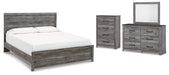 | Details | B1290B4: Includes king panel headboard/footboard and rails, Made with engineered wood (MDF/particleboard/plywood) and decorative laminate for the right balance of affordability and durability, Smoky gray finish over replicated oak grain with authentic touch, Decorative laminate replicates natural or man-made material surfaces with consistent color, pattern and texture, Foundation/box spring required, sold separately, Mattress available, sold separately, Assembly required, Bed is compatible with an adjustable base, B1290B1: Includes dresser and mirror, Made with engineered wood (MDF/particleboard/plywood) and decorative laminate for the right balance of affordability and durability, Two-tone look: smoky gray replicated oak grain accented with rustic charcoal finish; replicated oak grain with authentic touch, Charcoal finish over replicated oak grain with authentic touch, Decorative laminate replicates natural or man-made material surfaces with consistent color, pattern and texture, Large-scaled handles in a dark hue, 6 smooth-gliding drawers with dovetail construction, Drawer interiors are lined with a faux linen laminate for a clean, finished look, Framed front and pilasters, Mirror attaches to back of dresser; can also be mounted on wall horizontally or vertically, Safety is a top priority, clothing storage units are designed to meet the most current standard for stability, ASTM F 2057 (ASTM International), Drawers extend out to accommodate maximum access to drawer interior while maintaining safety, Assembly required, B1290-44: Expertly made with engineered wood (MDF/particleboard/plywood) for the right balance of affordability and durability, Decorative laminate replicates natural or man-made material surfaces with consistent color, pattern and texture, Two-tone look: smoky gray replicated oak grain accented with rustic charcoal finish; replicated oak grain with authentic touch, Large-scaled handles in a dark hue, 4 smooth-gliding drawers with dovetail construction, Drawer interiors are lined with a faux linen laminate for a clean, finished look, Framed front and pilasters, Safety is a top priority, clothing storage units are designed to meet the most current standard for stability, ASTM F 2057 (ASTM International), Drawers extend out to accommodate maximum access to drawer interior while maintaining safety, Assembly required, | |