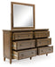 | Details | B787B4: Includes upholstered headboard, panel rails and bench footboard with slats, Made with hardwood solids, veneers and MDF substrates, Brown finish, Polyester upholstery, Nailhead trim, Turned feet, Foundation/box spring required, sold separately , Mattress available, sold separately, Assembly required, B787B1: Includes dresser and mirror, Made with hardwood solids, veneers and MDF substrates, Brown finish, Oil-rubbed bronze-tone knobs, 6 drawers with fully finished interior, dovetail construction and heavy duty ball-bearing side glides (top drawers felt lined), Turned feet, Mirror attaches to back of dresser, B787-46: Made with hardwood solids, veneers and MDF substrates, Brown finish, Oil-rubbed bronze-tone knobs, 5 drawers with fully finished interior, dovetail construction and heavy duty ball-bearing side glides (top drawer felt lined), Turned feet, | |