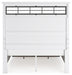 Details B844B2: Includes panel headboard, storage footboard, rails and roll slats, Footboard made with hardwood solids, MDF substrates and butcher block oak veneer, Headboard and rails made with hardwood solids and MDF substrates, White finish, Headboard with inset black metal barn sash, 2 drawers in footboard with fully finished interior, dovetail construction and ball-bearing side glides, Pulls with matte black finish, Bed does not require a foundation/box spring, Mattress available, sold separately, Assembly required, B844B1: Includes dresser and mirror, Made with hardwood solids, MDF substrates and butcher block oak veneer, Dresser with 2-tone finish (white finish; butcher block oak veneer with natural finish), Pulls with matte black finish, 10 spacious drawers with fully finished interiors (top drawers felt lined), dovetail construction and ball-bearing side glides , Drawers with inset picture fronts, Mirror attaches to back of dresser, B844-93: Made with hardwood solids, MDF substrates and butcher block oak veneer, 2-tone finish (white finish; butcher block oak veneer with natural finish), Pulls with matte black finish, 3 spacious drawers with fully finished interiors (top drawers felt lined), dovetail construction and ball-bearing side glides, 110V power supply with dual USB charging ports, Power cord included; UL Listed, Drawers with inset picture frame fronts,