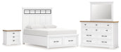 Ashbryn Queen Panel Storage Bed with Mirrored Dresser and Nightstand