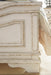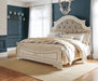 Details B743B2: Made of veneers, wood and engineered wood, with cast resin components, Includes upholstered headboard, footboard and rails, Distressed, chipped white finish, Polyester upholstered headboard with foam cushion and button tufting, Foundation/box spring required, sold separately, Mattress available, sold separately, Assembly required, Bed is compatible with an adjustable base, B743B1: Made of veneers, wood and engineered wood, with cast resin components, Antiqued two-tone finish, 7 smooth-gliding drawers with dovetail construction, Dark bronze-tone hardware, Mirror attaches to back of dresser, Assembly required, Includes tipover restraint device,