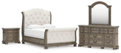 Ardenfield Queen Upholstered Sleigh Bed with Mirrored Dresser and Nightstand
