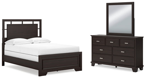 Covetown Full Panel Bed with Mirrored Dresser and Nightstand