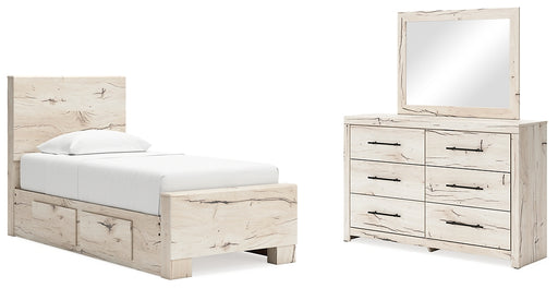 Lawroy Twin Panel Bed with Storage with Mirrored Dresser and Chest
