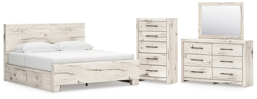 Lawroy King Panel Storage Bed with Mirrored Dresser and Chest