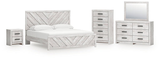 Paxberry King Panel Bed with Mirrored Dresser, Chest and Nightstand