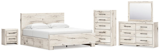 Lawroy King Panel Storage Bed with Mirrored Dresser, Chest and Nightstand