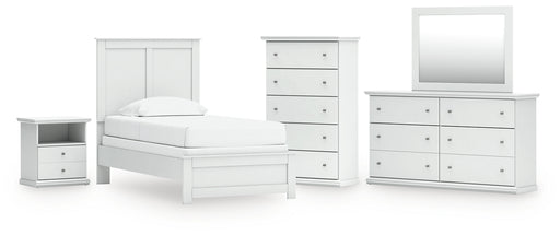 Bostwick Shoals Twin Panel Bed with Mirrored Dresser, Chest and Nightstand
