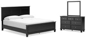 | Details | B687B9: Includes California king panel headboard, footboard and rails, Made with hardwood solids, birch veneer and MDF substrate, Black painted finish, Thick profiled tops, Tapered feet, Foundation/box spring required, sold separately, Mattress available, sold separately, Assembly required, Bed is compatible with an adjustable base, B687B1: Includes dresser and mirror, Made with hardwood solids, birch veneer and MDF substrate, Black painted finish, 7 smooth-gliding drawers with dovetail construction and ball-bearing side glides, Round metal drawer knobs with satin nickel-tone finish, Framed drawer fronts, Tapered feet, Mirror attaches to back of dresser, Assembly required, | |
