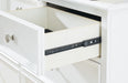 | Details | B680B5: Includes California king panel headboard, footboard and rails, Made with hardwood solids and MDF substrate, White painted finish, Tapered feet, Foundation/box spring required, sold separately, Mattress available, sold separately, Assembly required, Bed is compatible with an adjustable base, B680B1: Includes dresser and mirror, Made with hardwood solids and MDF substrate, White painted finish, 7 smooth-gliding drawers with dovetail construction and ball-bearing side glides, Round metal drawer knobs with satin nickel-tone finish, Tapered feet, Mirror attaches to back of dresser, Assembly required, B680-46: Made with hardwood solids and MDF substrate, White painted finish, Round metal drawer knobs with satin nickel-tone finish, Tapered feet, Framed drawer fronts, 5 smooth-gliding drawers with dovetail construction and ball-bearing side glides, | |