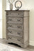 | Details | B751B5: Includes California king headboard, footboard and rails, Made with acacia wood, birch and acacia veneers, engineered wood and cast resin components, Antiqued gray finish, Ornately shaped headboard with inset upholstered cushion, Foundation/box spring required, sold separately, Mattress not included, sold separately, Assembly required, B751B1: Includes dresser and mirror, Made with acacia wood, birch and acacia veneers, engineered wood and cast resin components, Two-tone finish; antiqued gray body with a rich, deep walnut brown finish on top, Dark bronze-tone bails and knobs, 7 smooth-gliding drawers with dovetail construction, Framed drawer fronts , Overlay decorative corbels, Mirror attaches to back of dresser, Assembly required, B751-46: Made with acacia wood, birch and acacia veneers, engineered wood and cast resin components, Two-tone finish; antiqued gray body with a rich, deep walnut brown finish on top, Dark bronze-tone bails and knobs, 5 smooth-gliding drawers with dovetail construction, Framed drawer fronts, Overlay decorative corbels, | |