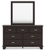 | Details | B441B9: Includes panel headboard, footboard, rails and slats, Made with hardwood solids, engineered wood veneer and MDF substrates, Dark brown finish, Floating panel headboard, Picture frame footboard, Foundation/box spring required, sold separately , Mattress available, sold separately, Assembly required, B441B1: Includes dresser and mirror, Made with hardwood solids, engineered wood veneer and MDF substrates, Dark brown finish, Metal bar pulls with bright nickel-tone finish, 7 smooth-gliding drawers with dovetail construction and metal center guides, Drawer interiors are lined with a wood grain laminate for a clean, finished look, Top moulding on dresser, Mirror attaches to back of dresser, B441-46: Made with hardwood solids, engineered wood veneer and MDF substrates, Dark brown finish, Metal bar pulls with bright nickel-tone finish, 5 smooth-gliding drawers with dovetail construction and metal center guides, Drawer interiors are lined with a wood grain laminate for a clean, finished look, Top moulding, B441-92: Made with hardwood solids, engineered wood veneer and MDF substrates, Dark brown finish, Metal bar pulls with bright nickel-tone finish, 2 smooth-gliding drawers with dovetail construction and metal center guides, Drawer interiors are lined with a wood grain laminate for a clean, finished look, Top moulding, | |