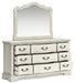 | Details | B980B5: Includes headboard, footboard and rails, Made with hardwood solids, spruce veneer, MDF substrates and cast resin components , Antiqued white painted finish, Polyester upholstery, Button tufting, Foundation/box spring required, sold separately, Mattress available, sold separately, Assembly required, B980B1: Includes dresser and mirror, Made with hardwood solids, spruce veneer, MDF substrates and cast resin components, Antiqued white painted finish, 9 drawers with fully finished interiors, French and English dovetail construction and ball-bearing side glides, Metal bar pulls with aged pewter-tone finish, Mirror attaches to back of dresser, B980-46: Made with hardwood solids, spruce veneer, MDF substrates and cast resin components, Antiqued white painted finish, 5 drawers with fully finished interiors, French and English dovetail construction and ball-bearing side glides, Metal bar pulls with aged pewter-tone finish, B980-93: Made with hardwood solids, spruce veneer, MDF substrates and cast resin components, Antiqued white painted finish, 3 drawers with fully finished interiors, French and English dovetail construction and ball-bearing side glides, Metal bar pulls with aged pewter-tone finish, 110V power supply with dual USB charging ports, Power cord included; UL Listed, | |