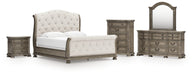 Ardenfield California King Upholstered Sleigh Bed with Mirrored Dresser, Chest and Nightstand