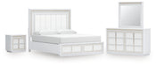 Chalanna California King Upholstered Storage Bed with Mirrored Dresser and Nightstand