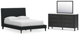 Cadmori Full Upholstered Bed with Mirrored Dresser