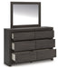 | Details | PCB3370B8: Includes headboard panel, headboard posts, footboard and rails, Made with engineered wood (MDF/particleboard/plywood) and decorative laminate for the right balance of affordability and durability , Dark charcoal finish over replicated oak grain, Decorative laminate replicates natural or man-made material surfaces with consistent color, pattern and texture, Foundation/box spring required, sold separately, Mattress available, sold separately, Assembly required, PCB3370B1: Includes dresser and mirror, Made with engineered wood (MDF/particleboard/plywood) and decorative laminate for the right balance of affordability and durability , Dark charcoal finish over replicated oak grain, Decorative laminate replicates natural or man-made material surfaces with consistent color, pattern and texture, Recessed hand grabs create hardware-less effect, 6 smooth-gliding drawers, Drawer interiors are lined with a faux linen laminate for a clean, finished look , Safety is a top priority, clothing storage units are designed to meet the most current standard for stability, ASTM F 2057 (ASTM International), Drawers extend out to accommodate maximum access to drawer interior while maintaining safety, Mirror attaches to back of dresser; can also be mounted on wall horizontally or vertically, Assembly required, | |