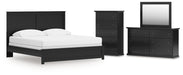 King Panel Bed with Mirrored Dresser and Chest
