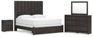 King Panel Storage Bed with Mirrored Dresser and Nightstand