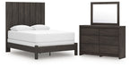 | Details | PCB3370B2: Includes headboard panel, headboard posts, footboard and rails, Made with engineered wood (MDF/particleboard/plywood) and decorative laminate for the right balance of affordability and durability , Dark charcoal finish over replicated oak grain, Decorative laminate replicates natural or man-made material surfaces with consistent color, pattern and texture, Foundation/box spring required, sold separately, Mattress available, sold separately, Assembly required, PCB3370B1: Includes dresser and mirror, Made with engineered wood (MDF/particleboard/plywood) and decorative laminate for the right balance of affordability and durability , Dark charcoal finish over replicated oak grain, Decorative laminate replicates natural or man-made material surfaces with consistent color, pattern and texture, Recessed hand grabs create hardware-less effect, 6 smooth-gliding drawers, Drawer interiors are lined with a faux linen laminate for a clean, finished look , Safety is a top priority, clothing storage units are designed to meet the most current standard for stability, ASTM F 2057 (ASTM International), Drawers extend out to accommodate maximum access to drawer interior while maintaining safety, Mirror attaches to back of dresser; can also be mounted on wall horizontally or vertically, Assembly required, | |