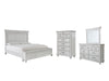 | Details | B777B6: Includes queen panel headboard, storage bench footboard and rails, Made with solid wood, veneers and engineered wood, Distressed whitewash finish, Foundation/box spring required, sold separately, Mattress available, sold separately, Assembly required, B777B1: Includes dresser and mirror, Made with solid wood, veneers and engineered wood, Distressed whitewash finish, Dark gray pewter-tone finished metal hardware, 7 smooth-gliding drawers, plus 2 small-scaled accessory drawers, Mirror attaches to back of dresser, Assembly required, B777-46: Made with solid wood, veneers and engineered wood, Distressed whitewash finish, Dark gray pewter-tone finished metal hardware, 7 smooth-gliding drawers, | |