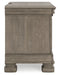 | Details | B924B2: Includes panel headboard and sleigh footboard with rails, Made with hardwood solids, birch veneer and MDF substrate, Light gray finish enhances the natural wood grain, Foundation/box spring required, sold separately, Mattress available, sold separately, Assembly required, B924B1: Includes dresser and mirror, Made with hardwood solids, birch veneer and MDF substrate, Light gray finish enhances the natural wood grain, Ring pull hardware, 9 drawers with fully finished interiors, dovetail construction and ball-bearing side glides, Jewelry drawer conveniently located in the center valance, Mirror attaches to back of dresser, B924-46: Made with hardwood solids, birch veneer and MDF substrate, Light gray finish enhances the natural wood grain, Ring pull hardware, 5 drawers with fully finished interiors, dovetail construction and ball-bearing side glides, B924-93: Made with hardwood solids, birch veneer and MDF substrate, Light gray finish enhances the natural wood grain, Ring pull hardware, 3 drawers with fully finished interiors, dovetail construction and ball-bearing side glides, Small accessory drawer conveniently located in the upper valance, 110V power supply with dual USB charging ports, Power cord included; UL Listed, | |