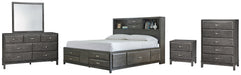 Caitbrook Storage Bed With 8 Storage Drawers With Mirrored Dresser, Chest And Nightstand