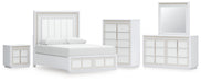 Chalanna Queen Upholstered Storage Bed with Mirrored Dresser, Chest and Nightstand