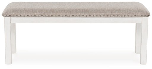 Signature Design by Ashley®Original price $259.99Original price $259.99 - Original price $259.99Original price $259.99Current price $149.99$149.99 - $149.99Current price $149.99Consumer's ChoiceThe Robbinsdale dining bench is sure to impress come mealtime. With its antiqued white finish and light gray upholstery with nailhead trim, modern ...