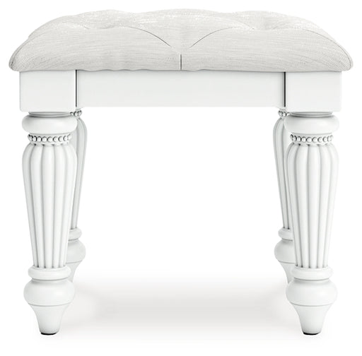 Kozlani Vanity Upholstered StoolSignature Design by Ashley®Original price $249.99Original price $249.99 - Original price $249.99Original price $249.99Current price $149.99$149.99 - $149.99Current price $149.99Fit for a princess. This vanity stool’s crisp matte white finish pairs with charming elements like turned legs, ornate beading and sumptuous button... View full details