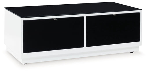 Signature Design by Ashley®Original price $789.99Original price $789.99 - Original price $789.99Original price $789.99Current price $459.99$459.99 - $459.99Current price $459.99Combining a high-gloss white finish with a black glass tabletop, this coffee table proves opposites really do attract. It's the perfect blend of mo...