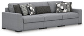 Details Includes 3 modular pieces: left-arm facing corner chair, armless chair and right-arm facing corner chair, "Left-arm" and "right-arm" describe the position of the arm when you face the piece, Modular pieces can float anywhere; sides are finished (with no connectors), Corner-blocked frame, Reversible seat and back cushions; high-resiliency foam cushions wrapped in poly fiber, Accent pillows included; pillows with soft polyfill, Polyester upholstery, Next-Gen Nuvella is a performance fabric that is soft, easy to clean, stain-resistant and durable, Easy-to-remove zippered covers for machine washing, Clean fabric with mild soap and water, let air dry; for stubborn stains, use a solution of 4 oz. bleach to 28 oz. water, Low-profile accent legs with faux wood finish, Platform foundation system resists sagging 3x better than spring system after 20,000 testing cycles by providing more even support, Smooth platform foundation maintains tight, wrinkle-free look without dips or sags that can occur over time with sinuous spring foundations