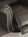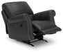 | Details | Pull tab reclining motion, Corner-blocked frame with metal reinforced seat, Attached cushions, High-resiliency foam cushions wrapped in poly fiber, Faux leather upholstery, Decorative turned legs with faux wood finish, 360-degree swivel, Gentle rocking motion | |