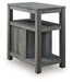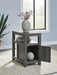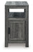Embrace simply stylish sofa-side function with this chairside end table. Keep entertainment essentials like remotes, coasters and more close with the handy storage cabinet. Battery running low? Built-in USB ports keep easy charging at your fingertips. And with the table's replicated weathered gray finish, it has the versatility to pair with aesthetics from casual to farmhouse.
