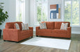 Looking to make a bold statement with color? Liven up your living room with this seating package. Its trend-right burnt orange upholstery adds a playful pop of color to your decor. Bold and eclectic accent pillows complete the look. Pairing posh style with everyday comfort, this set is a welcome addition to contemporary spaces.