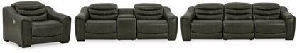 | Details | U63404S5: Includes 3 pieces: left-arm facing power recliner, armless chair and right-arm facing power recliner, "Left-arm" and "right-arm" describe the position of the arm when you face the piece, One-touch power control with adjustable positions, Easy View™ adjustable headrest and zero-draw USB port, Zero-draw technology only consumes power when the USB receptacle is in use, Corner-blocked frame with metal reinforced seat, Attached cushions, High-quality foam cushions wrapped in poly fiber, 100% top grain leather covers inside areas such as the back, seat and arm cushions; skillfully matched faux leather covers the remaining areas, Due to its natural origin, real leather can show individual characteristics such as healed scars, growth marks, grain variation and shade variation, Natural variations make each hide unique and do not detract from the wearing qualities of leather, Zero wall recliner design requires minimal space between wall and chair back, Power cord included; UL Listed, U63404S2: Includes 3 pieces: left-arm facing power recliner, console with storage and right-arm facing power recliner, "Left-arm" and "right-arm" describe the position of the arm when you face the piece, One-touch power control with adjustable positions, Easy View™ adjustable headrest and zero-draw USB port, Zero-draw technology only consumes power when the USB receptacle is in use, Corner-blocked frame with metal reinforced seat, Attached cushions, High-quality foam cushions wrapped in poly fiber, 100% top grain leather covers inside areas such as the back, seat and arm cushions; skillfully matched faux leather covers the remaining areas, Due to its natural origin, real leather can show individual characteristics such as healed scars, growth marks, grain variation and shade variation, Natural variations make each hide unique and do not detract from the wearing qualities of leather, Console with 2 cup holders, hidden storage, dual 110V outlets and dual USB charging ports, Zero wall recliner design requires minimal space between wall and chair back, Power cord included; UL Listed, U6340413: One-touch power control with adjustable positions, Easy View™ adjustable headrest and zero-draw USB port, Zero-draw technology only consumes power when the USB receptacle is in use, Zero-gravity mechanism (raises the ottoman to improve circulation), Corner-blocked frame with metal reinforced seat, Attached cushions, High-quality foam cushions wrapped in poly fiber, 100% top grain leather covers inside areas such as the back, seat and arm cushions; skillfully matched faux leather covers the remaining areas, Due to its natural origin, real leather can show individual characteristics such as healed scars, growth marks, grain variation and shade variation, Natural variations make each hide unique and do not detract from the wearing qualities of leather, Power cord included; UL Listed, | |
